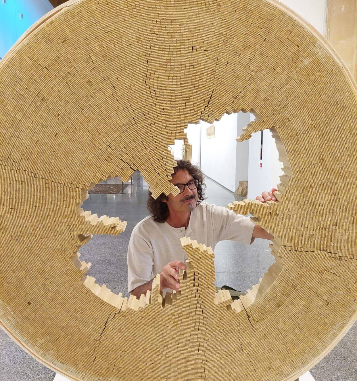 Durante años, Santocildes se ha dedicado a la elaboración de obras de arte en innumerables materiales y técnicas, siendo muchas de ellas producto de sus propias investigaciones en su amplia trayectoria en el mundo de la madera. Pero a pesar de llevarla en las venas, este material no es el único que ha llamado su atención, y la naturaleza que nos rodea se ha convertido en su proveedor principal, dando como resultado obras de arte realizadas en todo tipo de materiales, todos ellos procedentes de ámbito natural. Piedras, troncos y ramas entre otros, son la base con las que se obtienen piezas de alta calidad a las que se les ha dado una nueva vida.